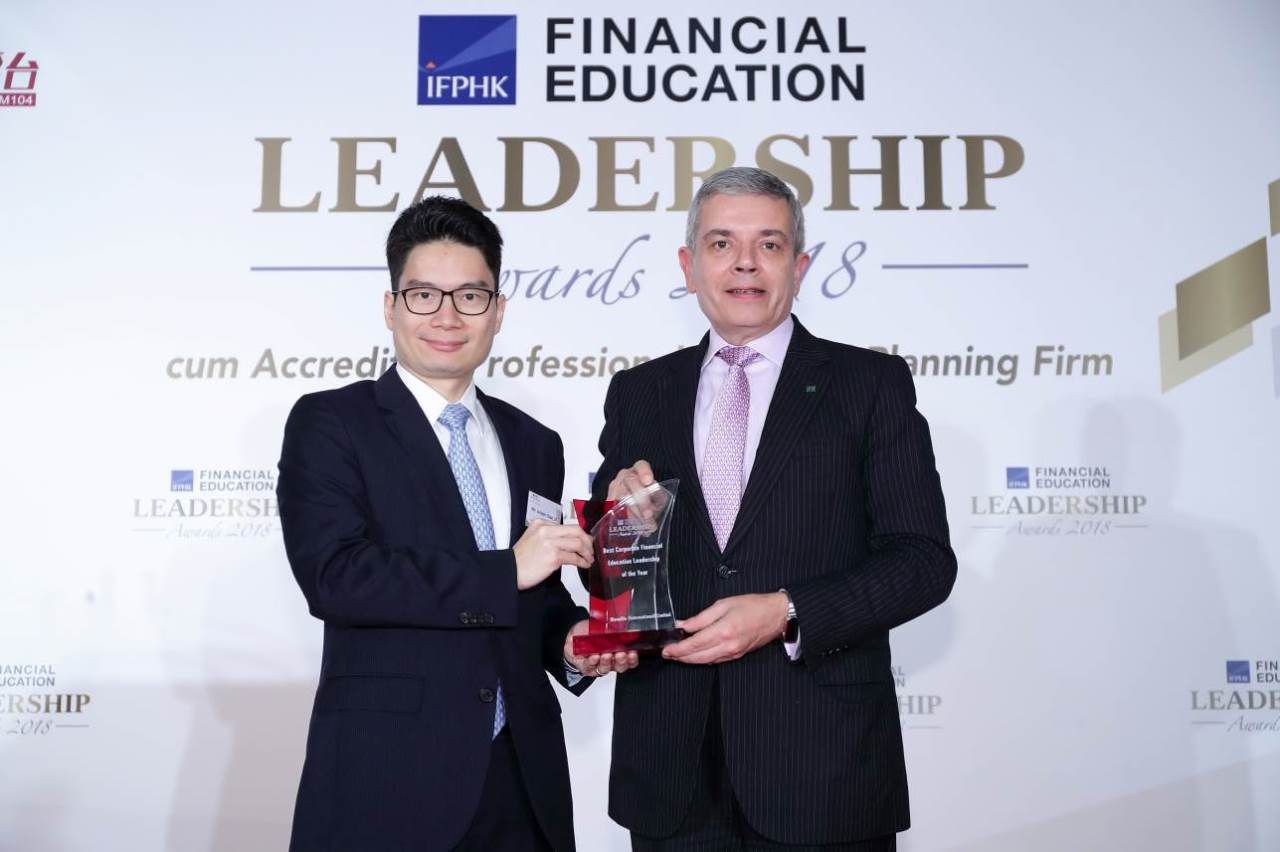 Manulife Hong Kong was a big winner at the inaugural IFPHK Financial Education Leadership Awards 2018. It took home four awards in recognition of the Company’s efforts in improving financial literacy in Hong Kong. Manulife Hong Kong CEO Guy Mills (right) received the awards on behalf of the Company.