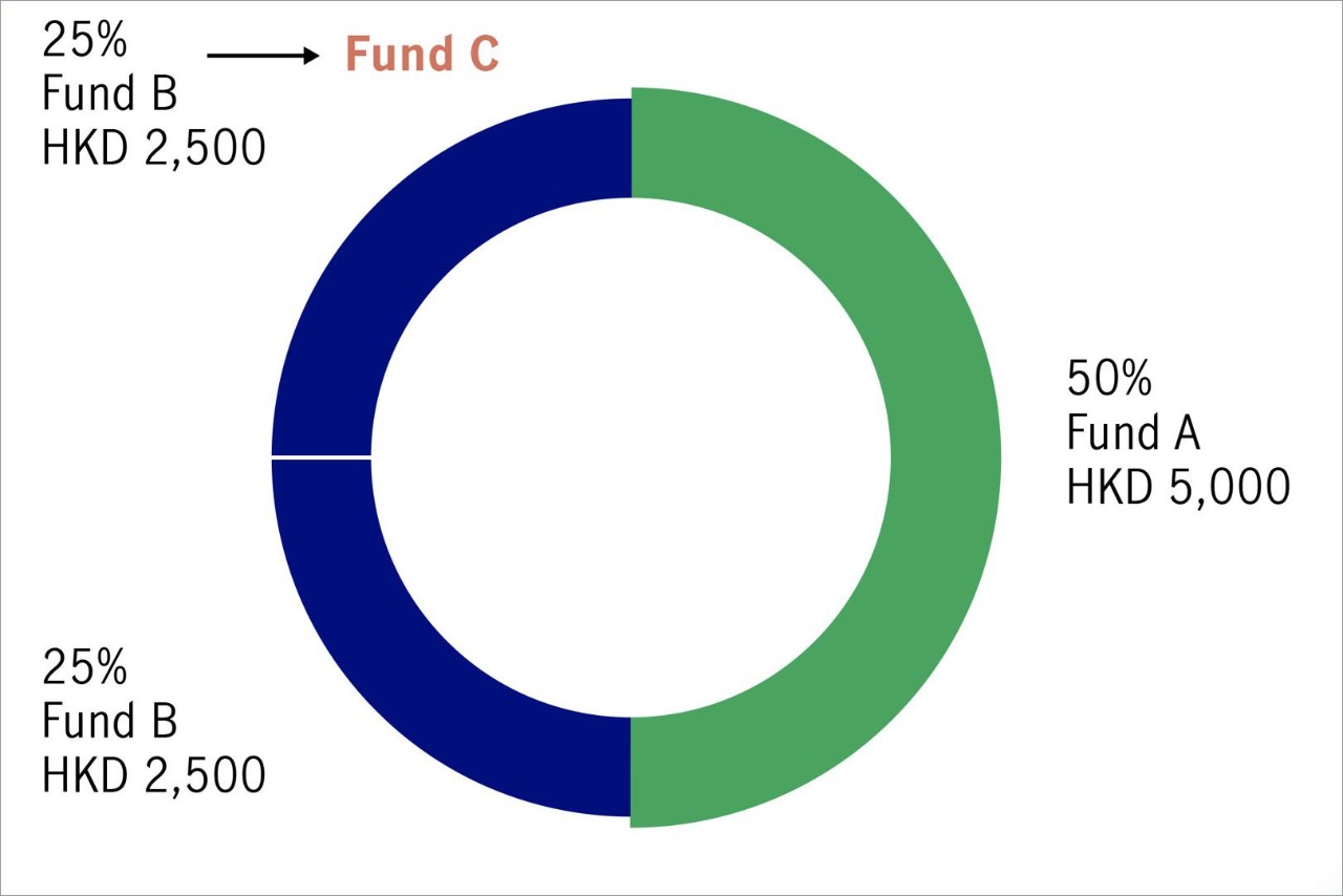 Fund C: 50% (i.e. Target balance is HKD 10,000 x 50% = HKD 5,000)