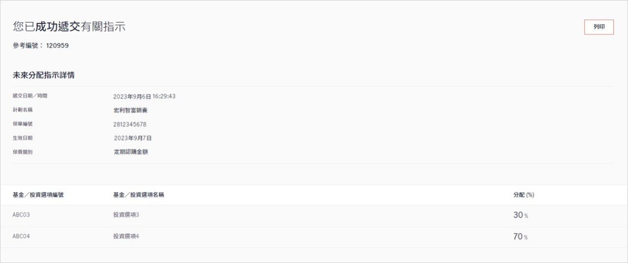 步驟三:覆核詳情,然後按「遞交」完成指示。